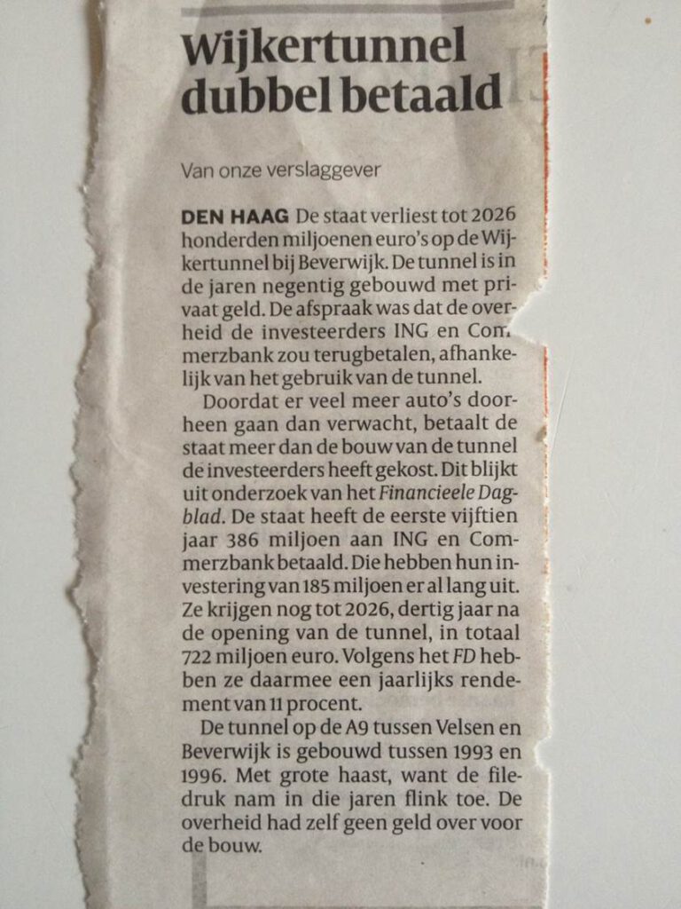 Een klein jaar geleden vond ik dit korte maar interessante krantenartikel in de Volkskrant dat ik onlangs als onderdeel van een college heb gebruikt. Het artikel gaat over de Wijkertunnel, aangelegd onder het Noordzeekanaal in de buurt van Velsen.