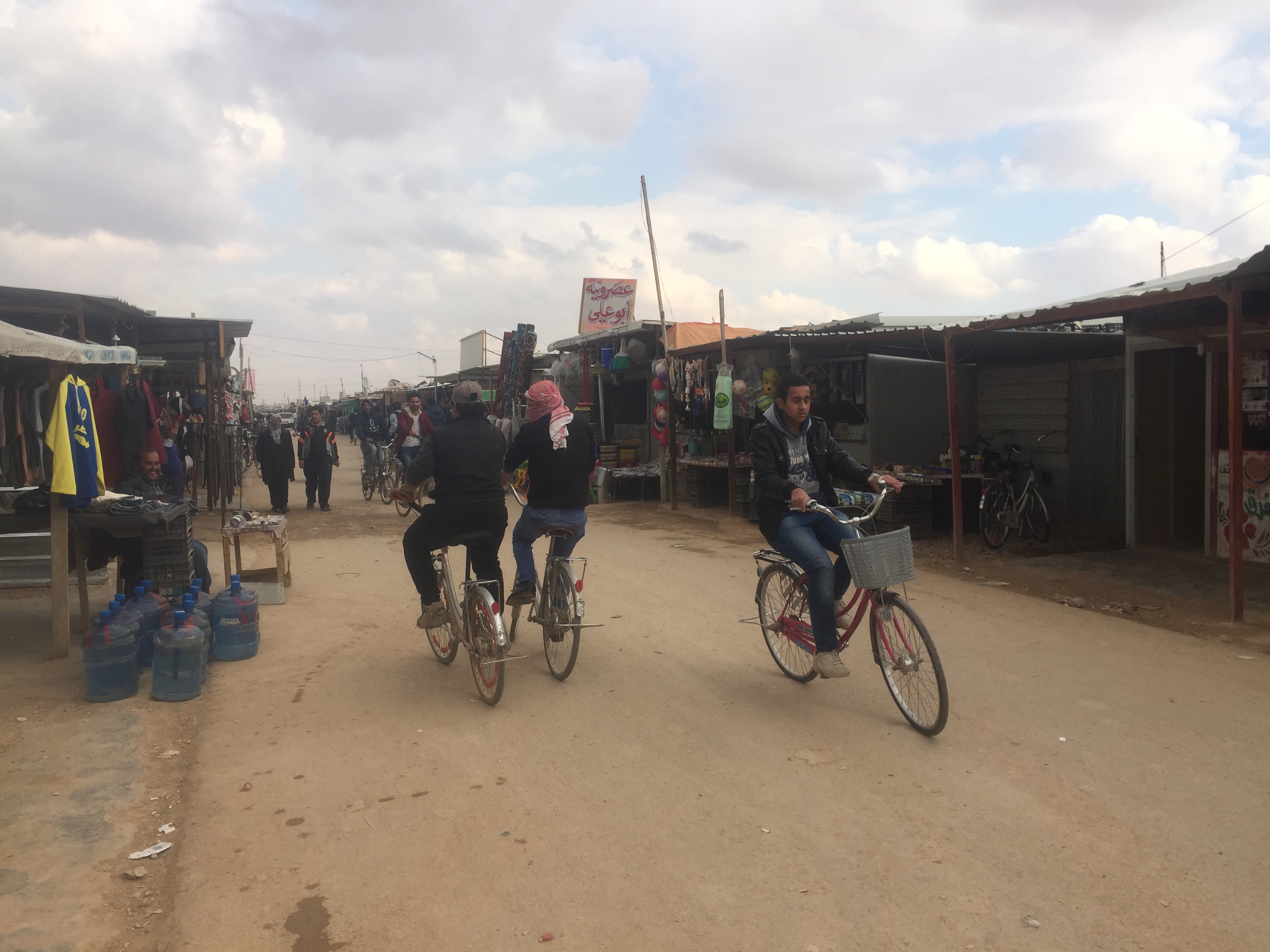 Za’atari is om verschillende reden een fiets en wandelstad. In eerste instantie komt het omdat de mensen geen auto’s hebben. Uhhh?. logisch. Ik heb begrepen dat het voor mensen in het kamp niet is toegestaan een auto aan te schaffen. Als het zou worden toegestaan dan hebben veel bewoners er niet de middelen voor. Waarschijnlijk wonen er buiten het kamp wel Syri?rs die een auto hebben. De vraag is of men in Syri? wel auto?s bezat en of de wens weer een auto te bezitten groot is.